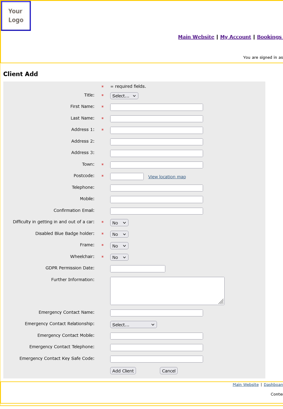 Only authorised users can access the Booking system, and there are multiple levels of Admin access.